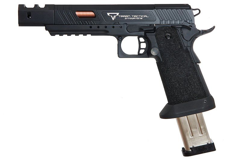 The Army Armament John Wick 3 Taran Tactical Combat Master Alpha is a fully licensed pistol that is patterned after the famous pistol used in the movie "John Wick 3". This pistol is a faithful reproduction and offers a satisfying shooting experience. Being designed around speed and competition shooting, the control surfaces are enlarged for faster access and even has ambidextrous safeties.