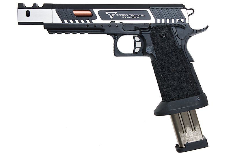 The Army Armament John Wick 3 Taran Tactical Combat Master Alpha is a fully licensed pistol that is patterned after the famous pistol used in the movie "John Wick 3". This pistol is a faithful reproduction and offers a satisfying shooting experience. Being designed around speed and competition shooting, the control surfaces are enlarged for faster access and even has ambidextrous safeties.