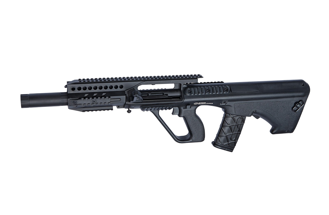 The AUG A3 MP is a compact Airsoft weapon with a full length barrel (530mm) giving long range rifle accuracy in a CQB sized gun, making this Steyr AUG the ideal multi mission Airsoft gun.