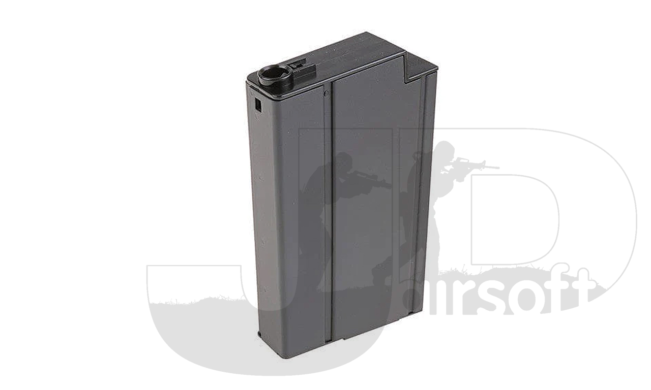 Already registered? Log in for update120rd Metal Mid-cap grey, is a medium capacity magazine designed for G&G M14 AEGs. An utterly essential piece of Airsoft kit for any G&G M14 owners, this spare mid cap magazine allows you to carry more ammunition in the field without needing to make a hasty retreat to reload your magazines. This particular GR14 magazine is intended to look like the original 1950s era 7.62mm magazines used by the M14, and as such they look perfect when paired with G&Gs GR14 M14 with wood furniture. Just like the real magazines, this Airsoft replica features a durable alloy shell, housing the polymer internals. Loading the 120 rounds is incredibly simple; using a speed loader the BBs are fed straight into the magazine feed tube. There's no need for winding the magazine, as when loaded it feeds directly into the Airsoft M14. If youre an Airsofter with a G&G GR14, then these magazines are an utterly invaluable purchase, ensuring that you can stay in the field longer.
