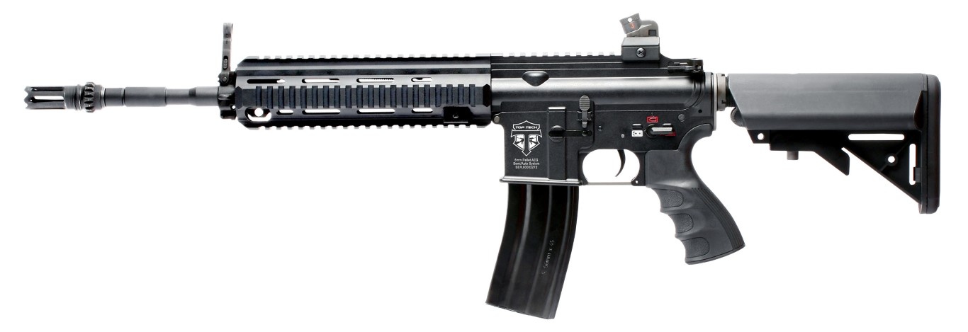 Just like the real thing, the T4-18 418 is constructed largely from Alloy; featuring Alloy Upper and Lower Receiver groups, Railed Handguard and Outer Barrel. Only the Stock and Pistol Grip are constructed from Polymer, which is Lightweight and Durable. The Pistol Grip features an Ergonomic Textured surface, which ensures that users always maintain a firm hold on the Airsoft gun. As part of G&Gs premier Upgraded Internals Series, this Airsoft gun features Electric Pneumatic Blowback, a feature which creates a small but noticeable sensation of Recoil, allowing users to simulate the recoil of a real rifle. The gun comes with a 6.03mm Tightbore Barrel as standard, resulting in improved accuracy out of the box. The Handguard is a replica of the 416s, featuring quad 20mm RIS Rails, allowing the installation of all manner of accessories, such as Grips, Laser/Light Modules or even Grenade Launchers. The Full length upper 20mm RIS Rail allows users to fit Scopes or Optics, to enhance their ability to acquire and engage targets while Airsofting. The Stock of the weapon is adjustable, featuring up to 6 positions, and has a rubberised butt plate to prevent slipping. The weapon features a 'Decocking' Forward assist, which allows you to release the tension on the spring for storage, increasing the life-span of the weapon. If youre looking for a standard sized 416D replica, or simply want an incredibly practical and tactical Airsoft gun, then the TR4-18 418 is a solid choice.