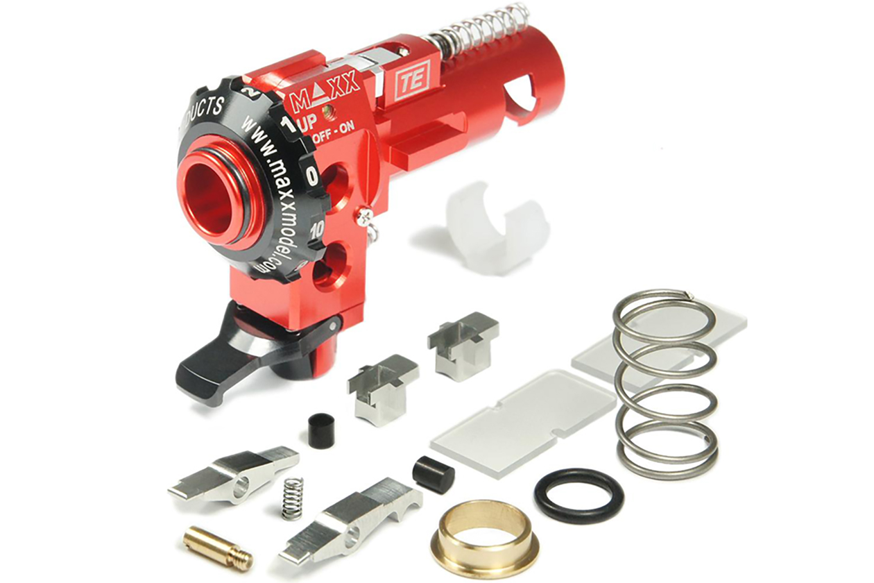 | Equipped with 3 compression springs on top, at bottom and in center of housing to ensure the hopup unit is exactly centered, straight and air tight | |