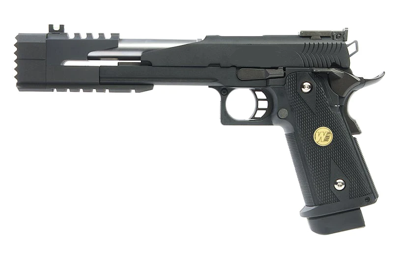 Already registered? Log in for updateThe Hi-Capa series made by We is an esthetic variant of Hi-Capa models. Particularities include the slide, with a cut leaving the barrel exposed. This replica is delivered with a gas magazine holding up to 30 pellets.